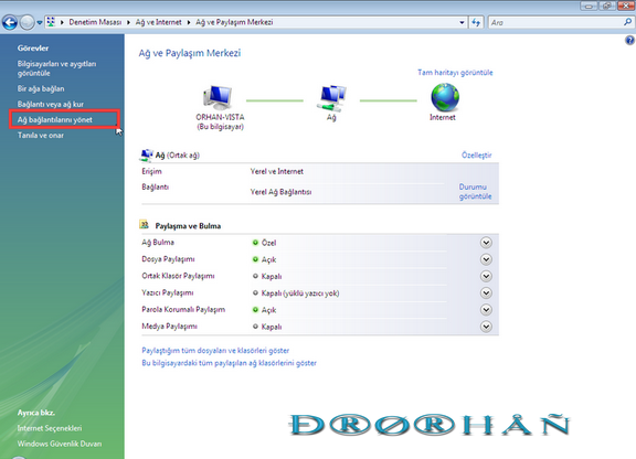 Ağ ve Paylaşım Merkezinden.